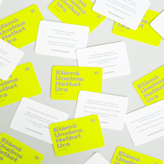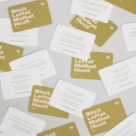 Heivaa puhelin pois ja ota Keskustelupakka esiin, kun tahdot läsnäolevaa aikaa ystäviesi tai kumppanisi kanssa. Keskustelupakka takaa sen, ettei sinun tarvitse enää miettiä, mistä jutella vaikkapa illanistujaisissa tai treffeillä. Korttipakka pistää stopin kiusalliselle small talkille tai säästä puhumiselle. Tämä seurapeli auttaa sinut seurueesi kanssa kiinnostavien keskusteluiden pariin kuivemmissakin kokoontumisissa.