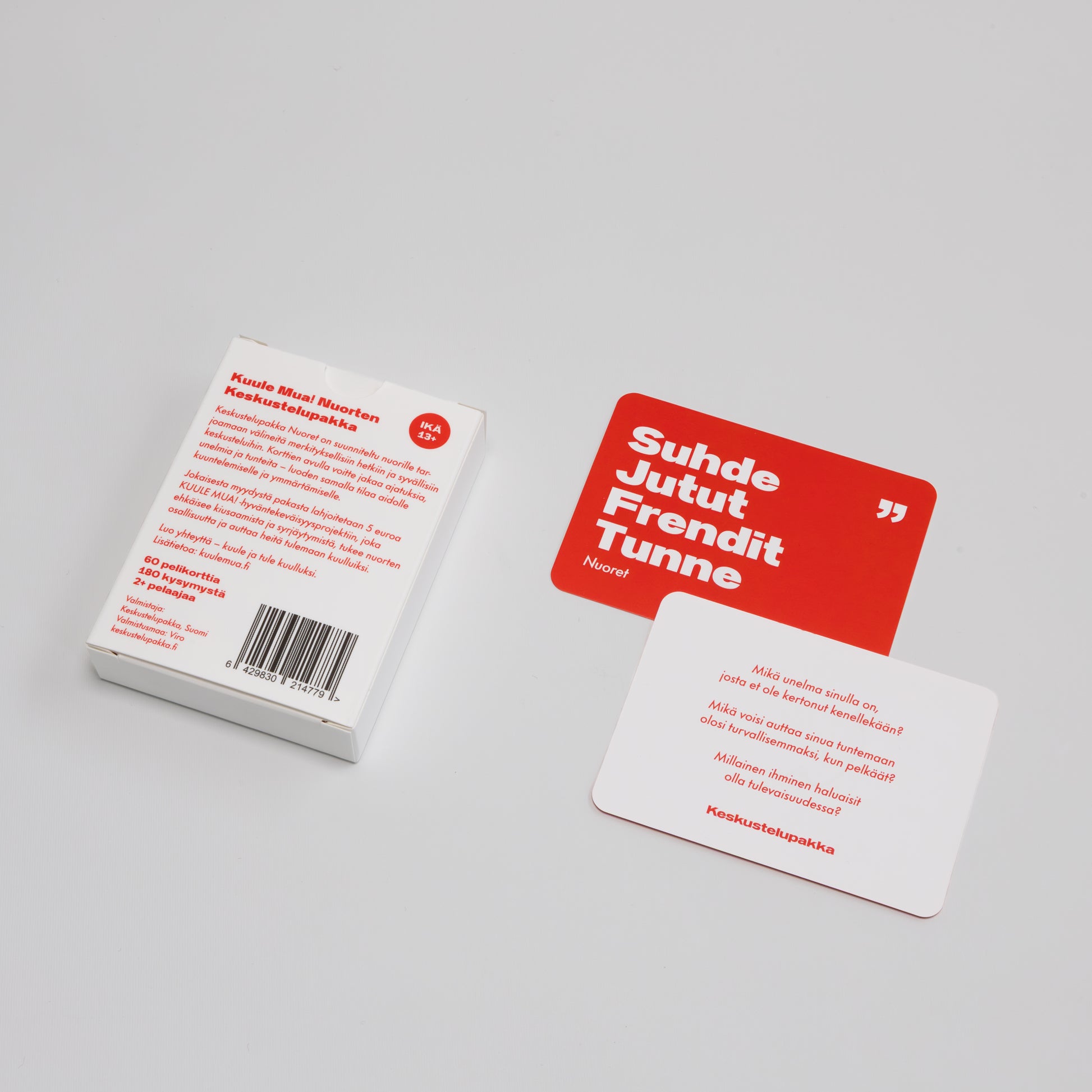 Ota Nuorten keskustelupakka – Kuule Mua! mukaan koti-iltaan, mökille, retkelle tai vaikka nuorisotilaan. Se mahtuu laukkuun, mutta avaa oven loputtomiin keskusteluihin ja uusiin oivalluksiin.